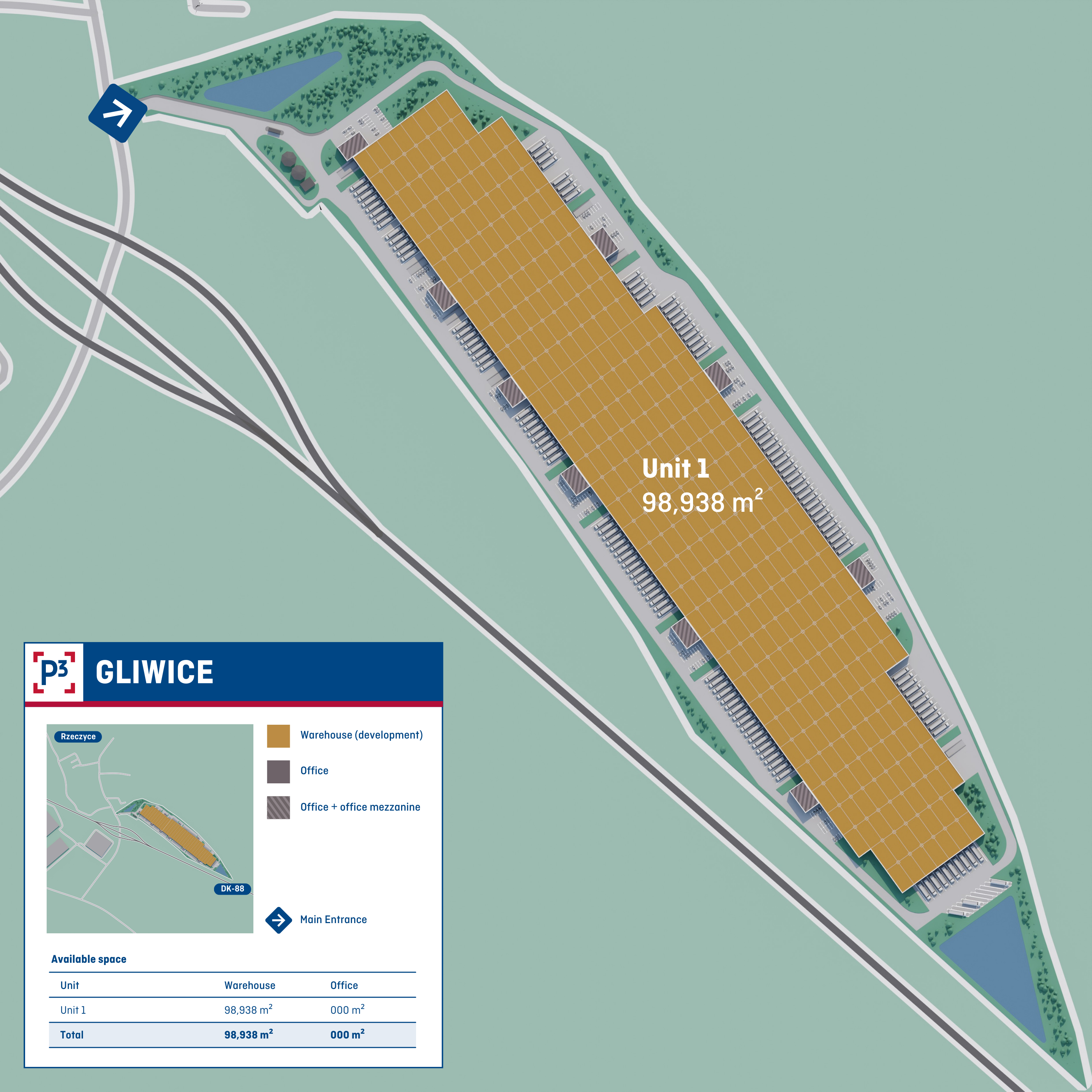 The planned new P3 Gliwice development is located in Upper Silesia, west of the Katowice conurbation, near an exit from the A4 motorway.