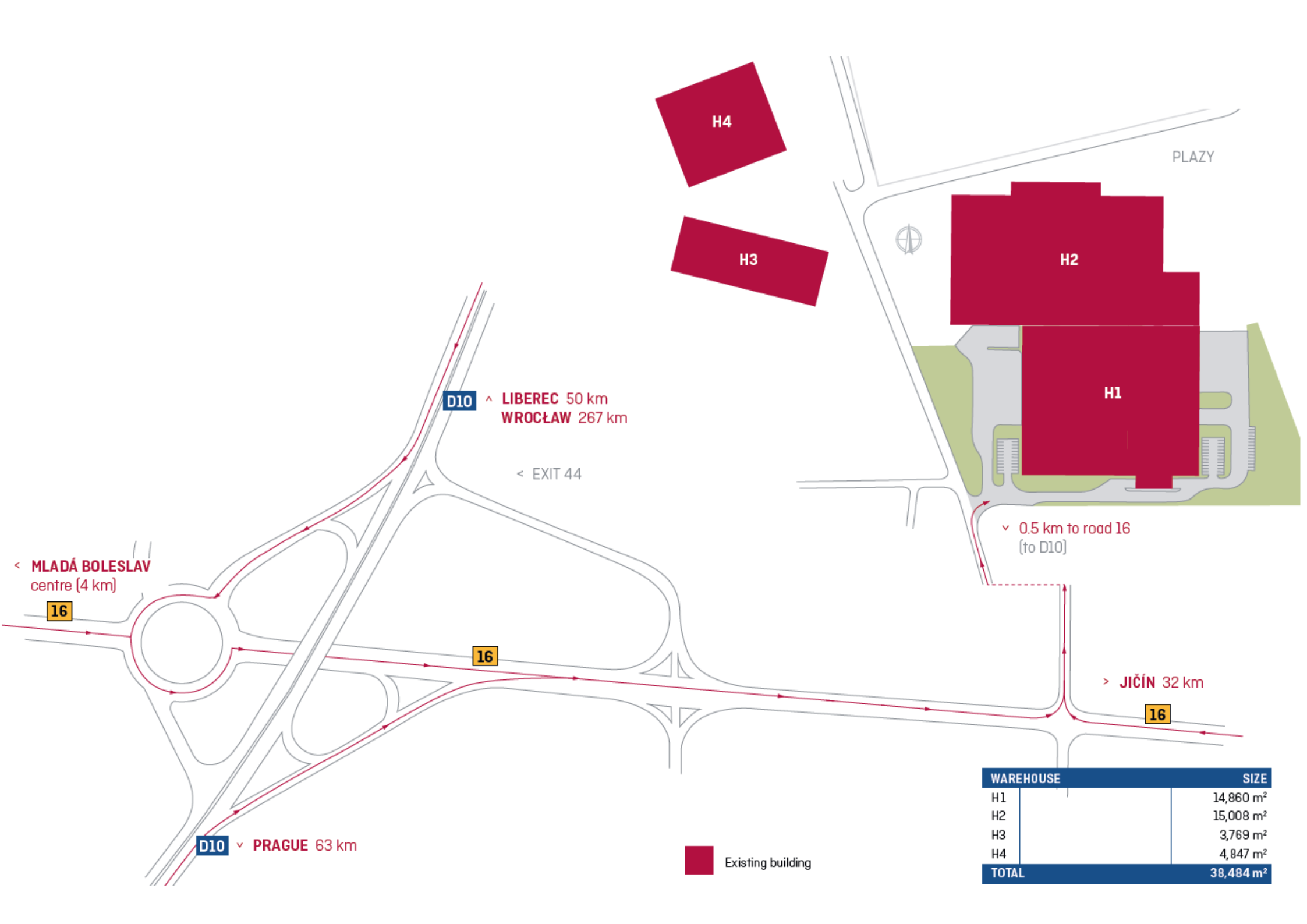 P3 Mladá Boleslav befindet sich im Industriegebiet Mladá Boleslav – Plazy in der Nähe der Fernstraße D10, die Prag mit Liberec verbindet. Über regelmäßig verkehrende Buslinien ist die Erreichbarkeit des Stadtzentrums von Mladá Boleslav gesichert. Außerdem gibt es im Industriegebiet ein großes Einkaufszentrum namens Olympia. Die Bauarbeiten am Park wurden 2009 aufgenommen, momentan umfasst er 1 Gebäude. Die größten Einzelmieter des Parks sind HP-Pelzer und Yapp Czech Automotive.