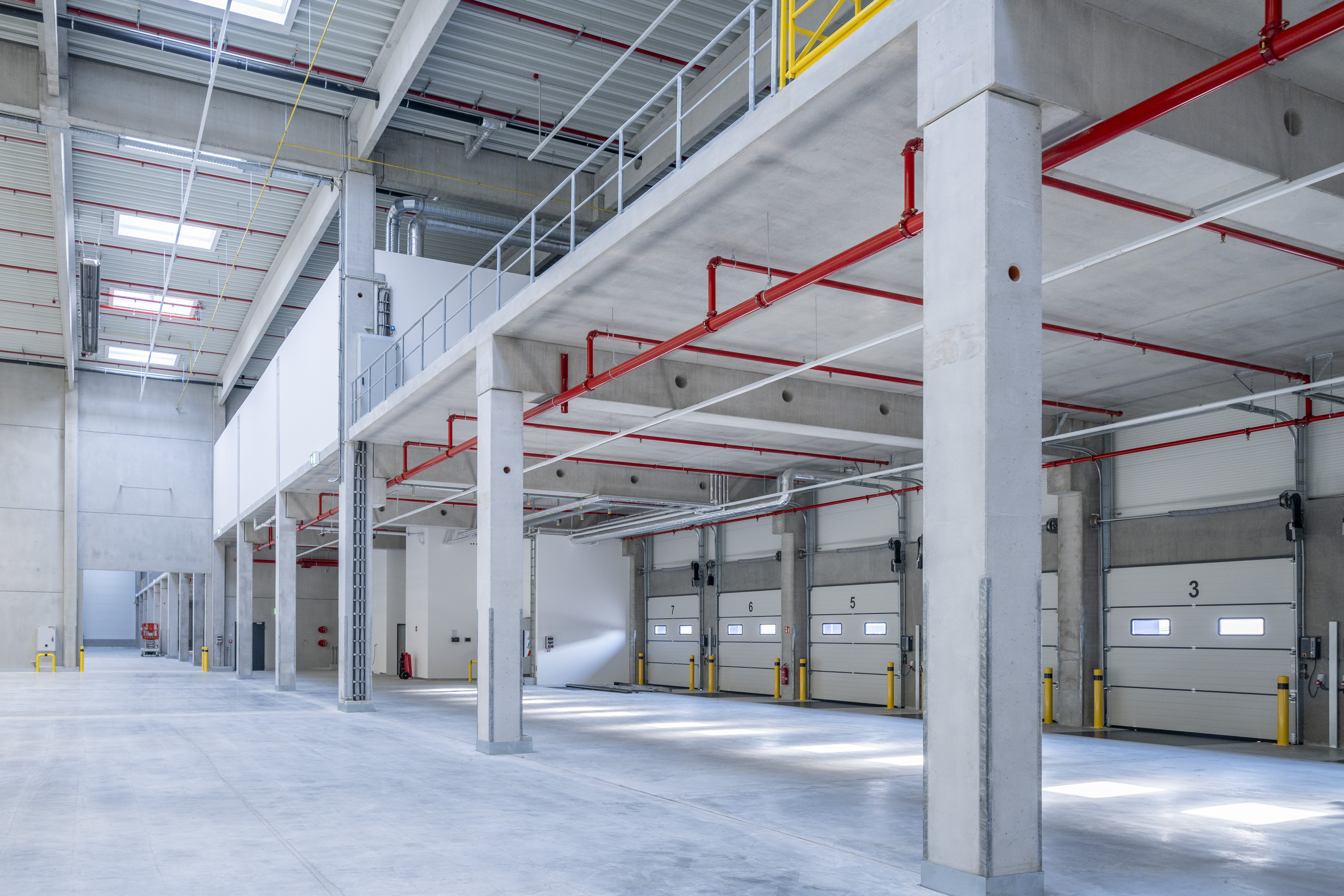 The site provides around 32 300 m² of flexible logistics space across two warehouses, including approximately 28 400 m² of warehouse space, about 1 580 m² of offices and 2 100 m² of mezzanine. Built to A+ standards, it offers a 12 m clear height, 7 t/m² floor load, 34 loading docks, four ground‑level docks, 120 car parking spaces and six truck bays.