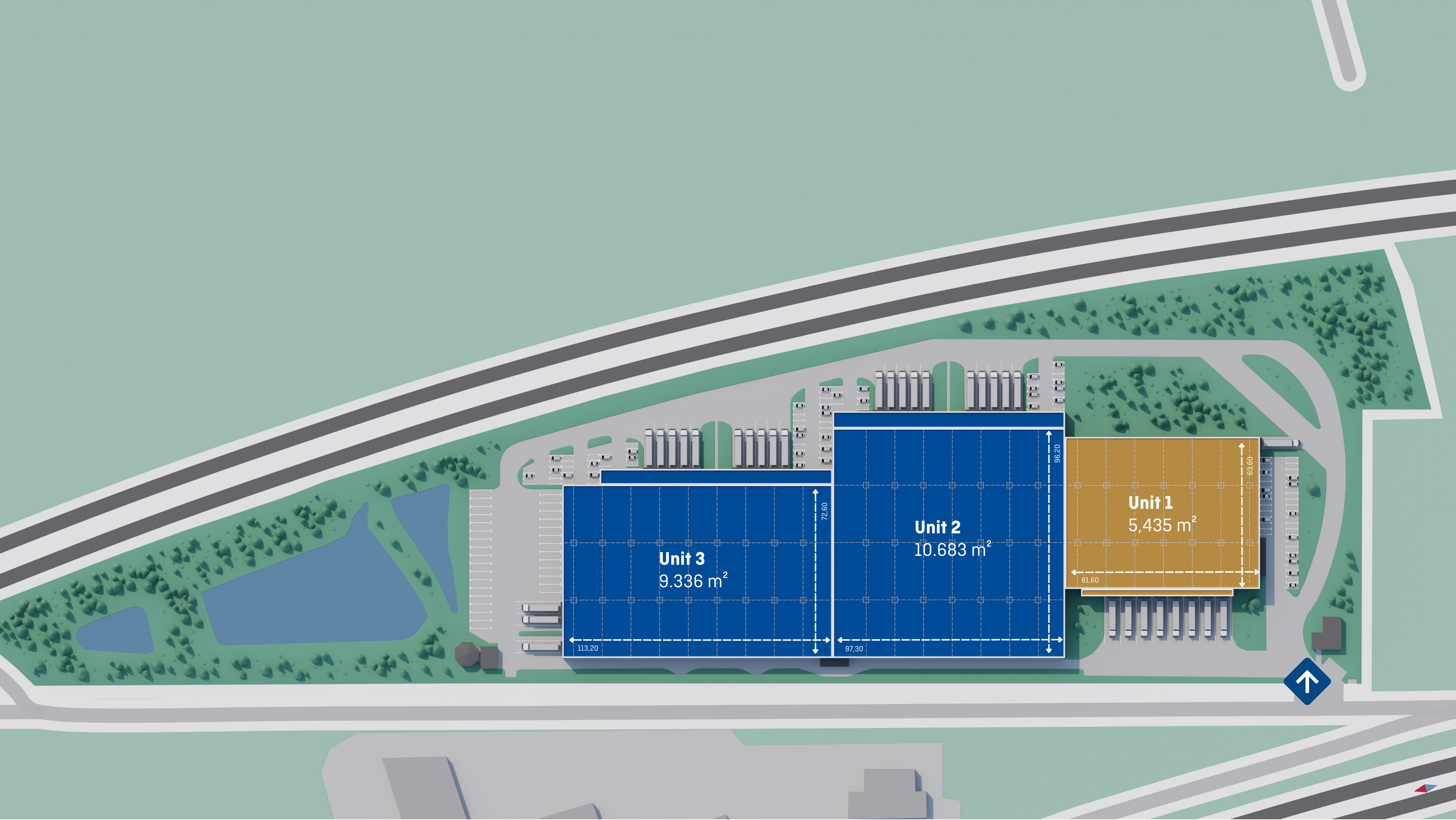 P3 Saulce sur Rhône propose 25 454 m² d'entrepôts divisés en deux lots indépendants (bureaux et zone de chargement), avec un accès direct aux routes N7 et A7 et une visibilité ininterrompue depuis l'autoroute.