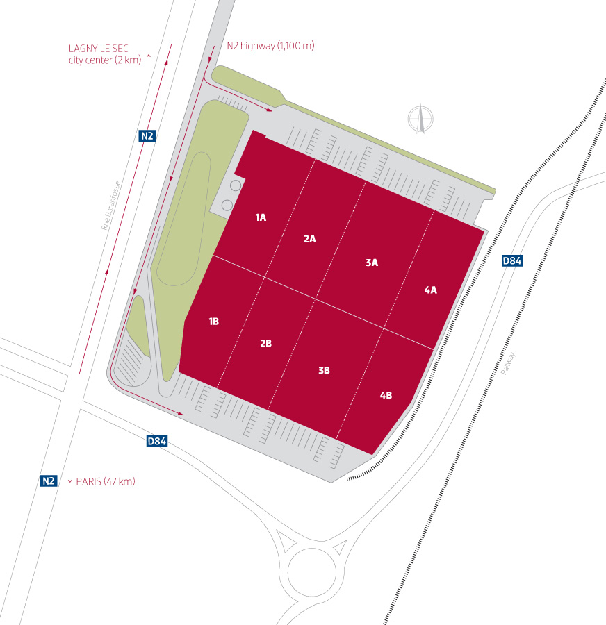 P3 Lagny Le Sec è situato a circa 20 km a nord di Parigi e 20 km a nord-ovest, dall’aeroporto internazionale Charles de Gaulle. Il parco è vicino alla strada principale ed è collegato, tramite la N2, all’uscita 7 dell’autostrada A1, 20 km a sud-ovest. È composto da due edifici collegati che possono ospitare fino a otto operatori logistici.
