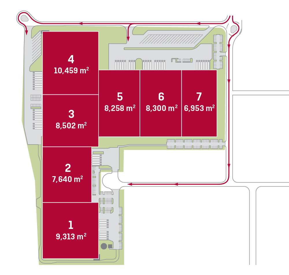 La struttura ha un’altezza libera di 12,2 m e illuminazione a LED. Ogni unità ha una porta di accesso al livello della strada e una banchina con elevatore “Jumbo”.