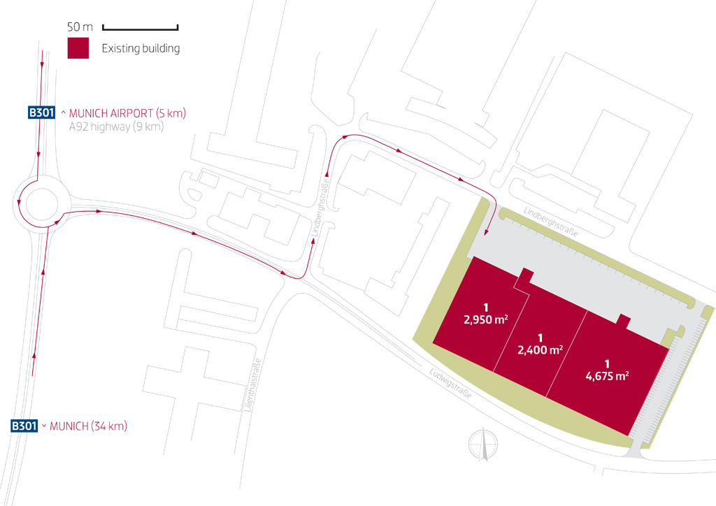 Il comune di Hallbergmoos si trova a nord di Monaco di Baviera. La struttura è a circa 25 km dal centro di Monaco, a 3 km dall’aeroporto della città e a 14 km da Freising. Nei pressi scorrono l’autostrada A92 (Monaco-Deggendorf) e la statale B11.