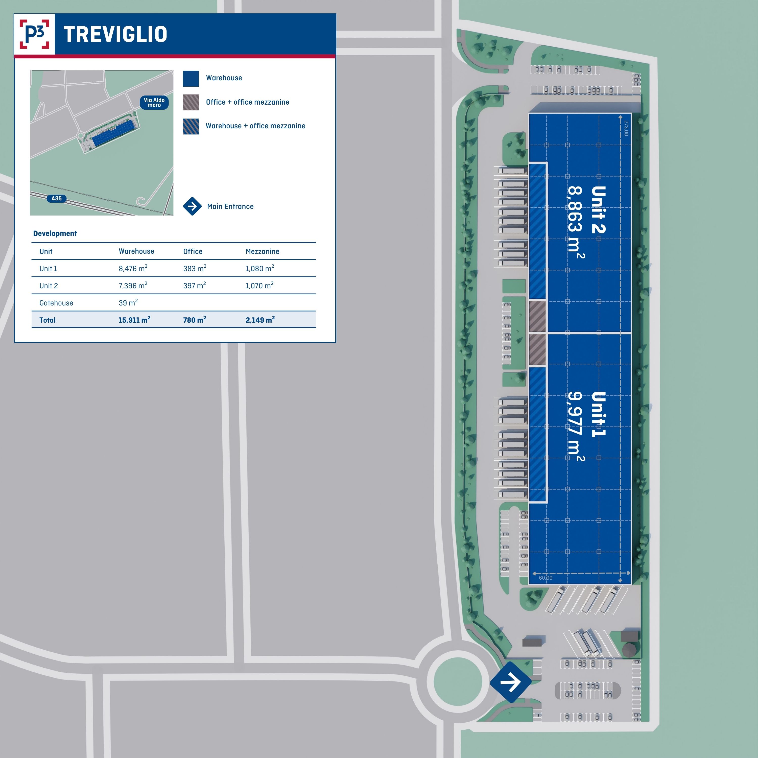 P3 is developing a new logistics warehouse in Treviglio (BG) with a total GLA of 18.802 sqm, divisible into two independent units.