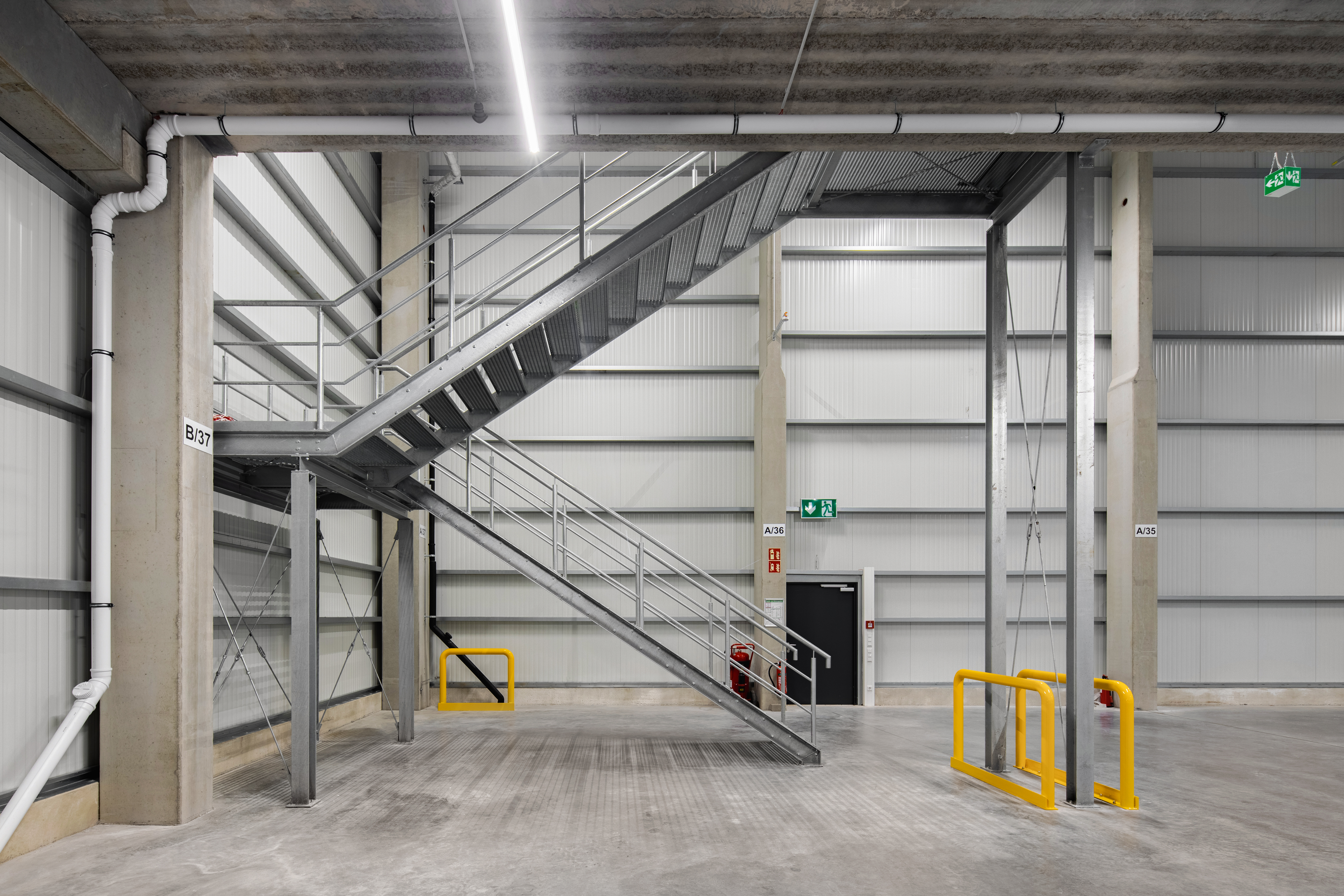 Built to a high environmental standard and certified DGNB Gold, the complex features energy‑efficient LED lighting and a digital monitoring system that tracks resource consumption and environmental conditions in real time. Additional sensors measure loading‑dock and floor‑load stresses, supporting predictive maintenance.